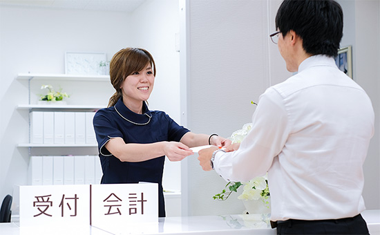 当院受付にて、診察の受付をお済ませください。